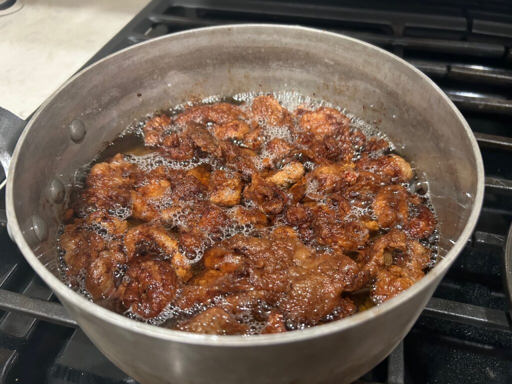 Step 4: When there is a fair amount of liquid and the fat starts to change color you are almost done. Ensure you stop it before the fat turns dark and smells like it's burnt (which is what happened to me my first time doing it). I have only done this twice and it is something that you will need to learn how to do perfectly more than likely.